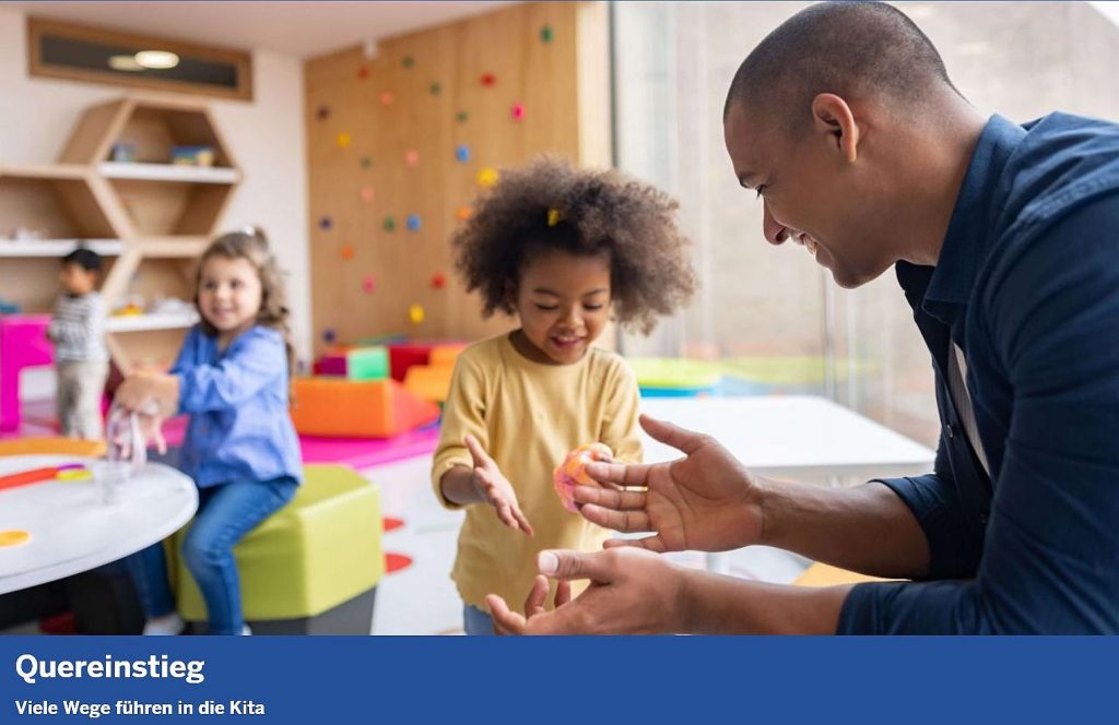 Mit einem Klick in das Bild findest du hier Informationen über die Möglichkeit zum Quereinstieg. Wenn Du bereits eine abgeschlossene Berufsausbildung hast und Dich beruflich neu orientieren möchtest, kannst Du auf dieser Seite erfahren, wie DU Deine Fähigkeiten und Erfahrungen in die Arbeit in Kindertageseinrichtungen einbringen kannst…